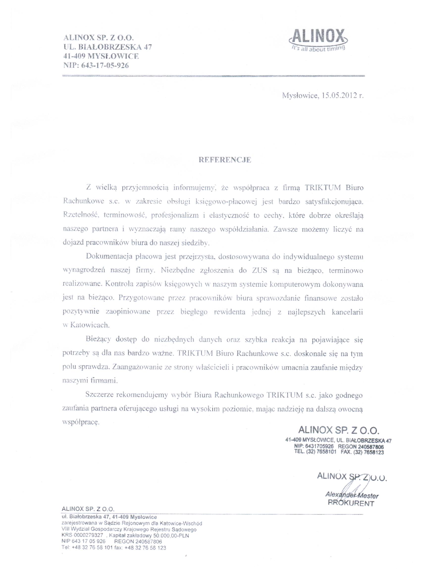 Mamy przyjemność potwierdzić jakość świadczonych usług referencjami jednego z naszych partnerów.